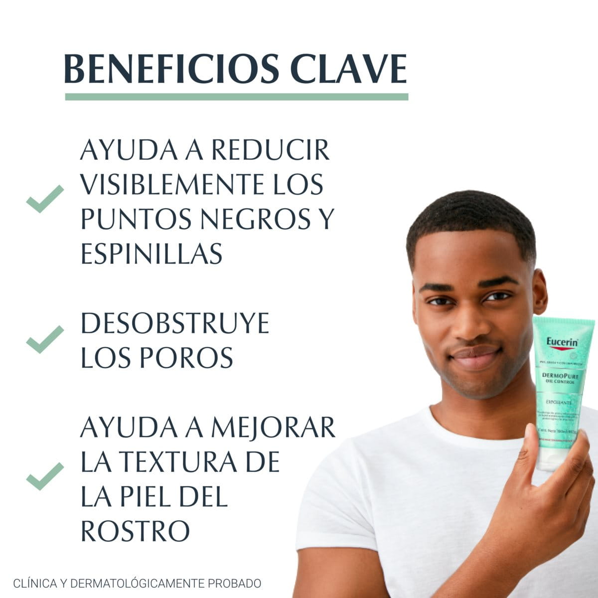 Eucerin DermoPURE Oil Control Exfoliante, libre de aceites con Ácido Láctico, elimina impurezas sin resecar la piel, apto para el rostro y cuerpo. La acción exfoliante de las micropartículas naturales actúa contra las células muertas de la piel, una de las principales causas de los puntos negros y granitos. Limpia suavemente y remueve el maquillaje. Ayuda a destapar poros, eliminar impurezas y reducir puntos negros, la textura de la piel a simple vista limpia y refinada. Este producto ha sido formulado específicamente para piel grasa y propensa a imperfecciones, la cual no esta bajo medicación.
