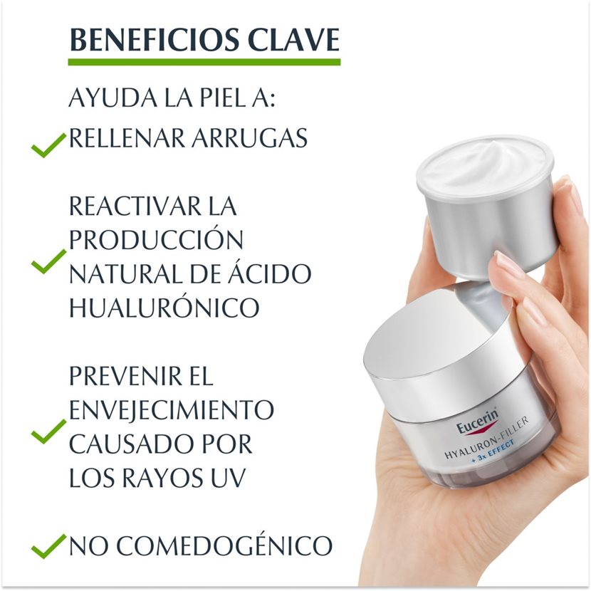 Eucerin Hyaluron-Filler Noche con fórmula 3x Effect contrarresta este proceso:
