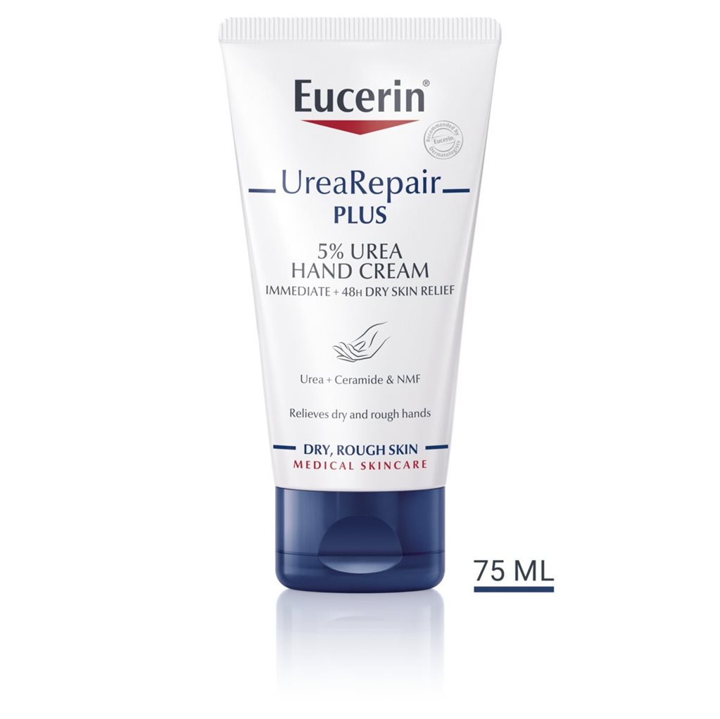 Our dedicated hand cream absorbs easily, is non-greasy and contains the balance of ingredients needed to help protect your skin from losing moisture. Eucerin UreaRepair PLUS 5% Urea Hand Cream offers immediate + 48h relief from dry skin. It soothes redness and smooths rough skin, keeping hands soft and moisturized, even with frequent handwashing